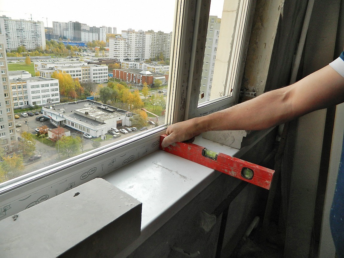 Incluso después de que el alféizar de la ventana esté listo, debe ir a lo seguro y verificar todo nuevamente. La uniformidad de la estructura se verifica además con un nivel.
