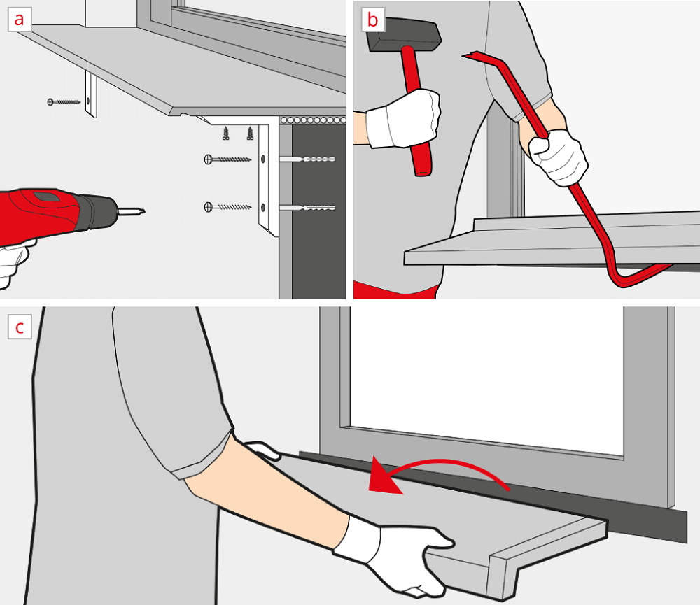 - Dependiendo del material, se elige el método de fijación del alféizar de la ventana.