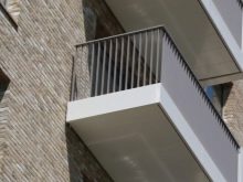 La peculiaridad de la valla de balcón es la sujeción reforzada, que da cuenta tanto del peso de las personas que evita que se caigan, como de la carga del viento. Además de la viga superior con pasamanos, el parapeto consta de piezas longitudinales transversales que dan resistencia a toda la estructura.