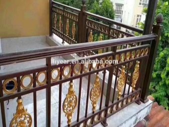Las estructuras más bellas: acero inoxidable o forjado, madera, así como barandillas compuestas con componentes de bronce. Para una vista lujosa, el consumidor paga mucho dinero según los estándares de cambio de las barandas del balcón.