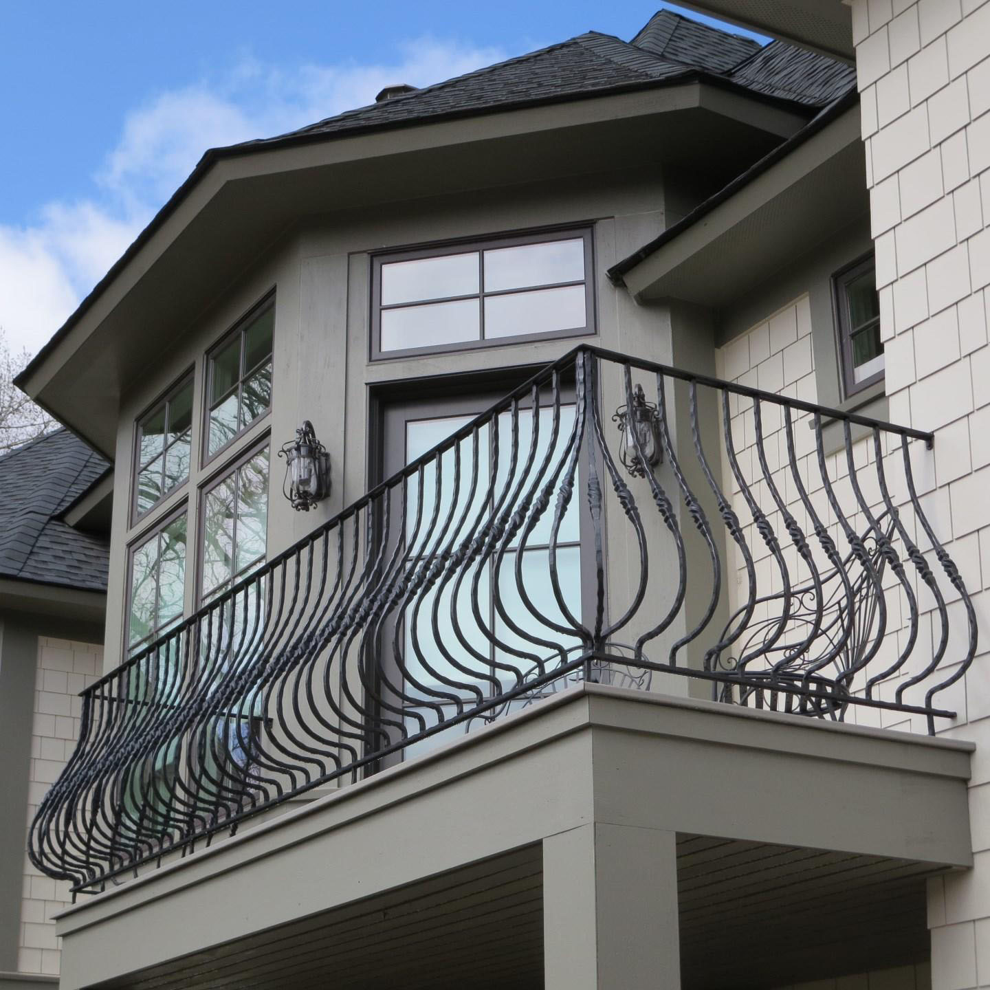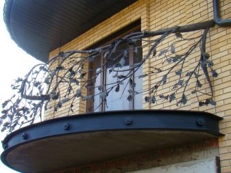 Las barandillas en un balcón de radio (semicircular) pueden ser, por ejemplo, fundidas o forjadas.