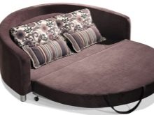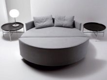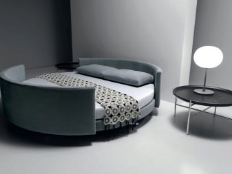 Los sofás cama redondos son transformadores que se pueden desmontar fácilmente y, si es necesario, montar. En apariencia, el transformador parece un sofá ordinario, pero cuando se desmonta es una cama en toda regla. Estos modelos no suelen tener un cabecero muy grande.