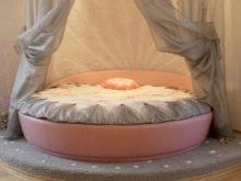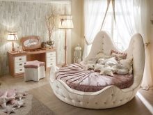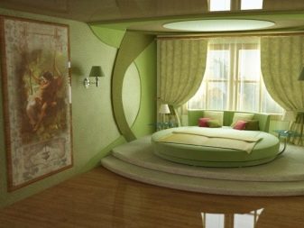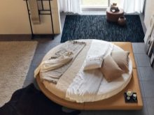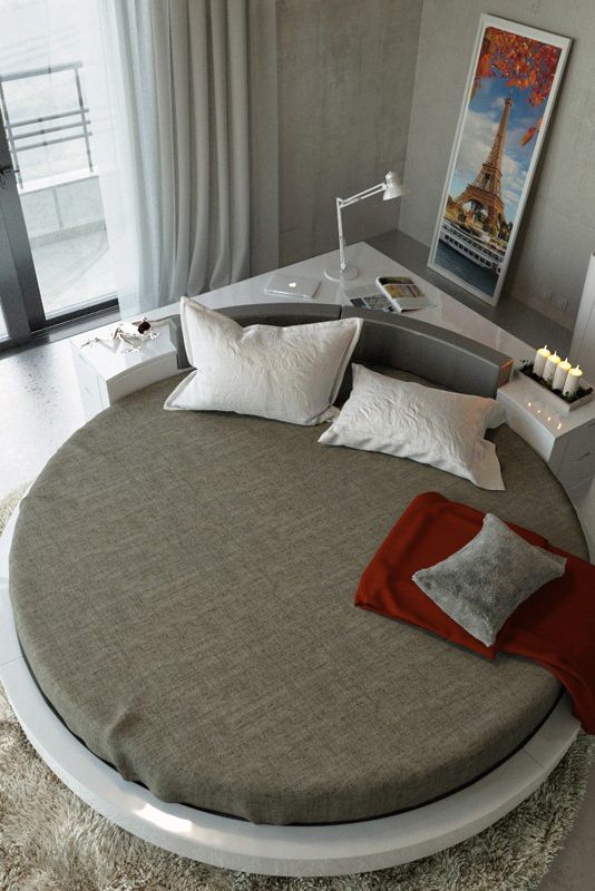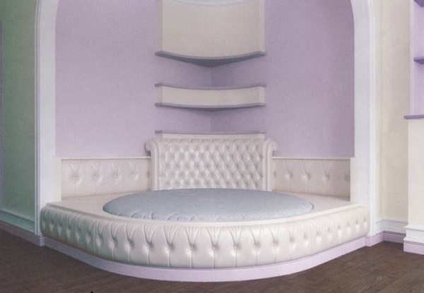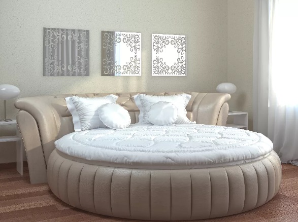 - Vale la pena señalar que las camas redondas son bastante grandes, por lo que no se instalan en habitaciones muy pequeñas.