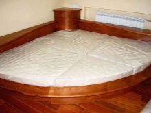 Los fabricantes también producen camas de esquina semicirculares, pero la misma "angulosidad" de los muebles, más bien, agrega una cabecera. La cama en sí tiene un diseño redondeado.