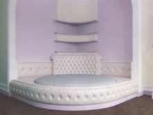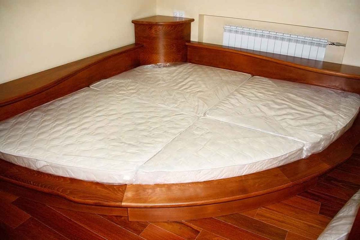 - Modelos redondos sin cabecero tienen menos demanda, ya que para que sea cómodo dormir sobre ellos, tendrás que instalarlos en una esquina o instalar paneles de pared especiales que servirán como una especie de cabecero en la pared.