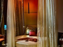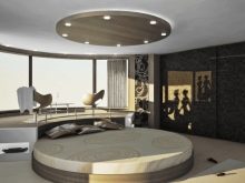 - La ventaja indudable de la cama redonda es su apariencia original no estándar. Las habitaciones con una cama así siempre se ven caras y sofisticadas. Aún así, el diseño redondo difiere del tipo habitual de cama y, por lo tanto, los amantes de algo nuevo e inusual lo eligen a menudo.