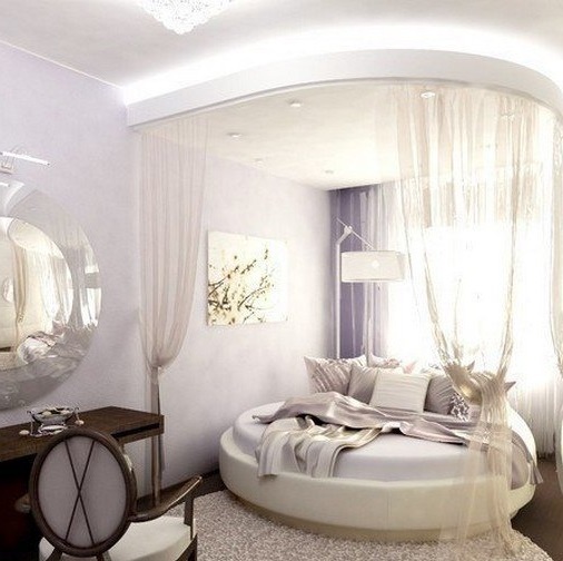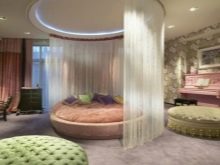 Para comprender cómo se ven las camas redondas y semicirculares en el interior de un dormitorio, le recomendamos que se familiarice con los ejemplos más exitosos presentados en la galería de fotos.