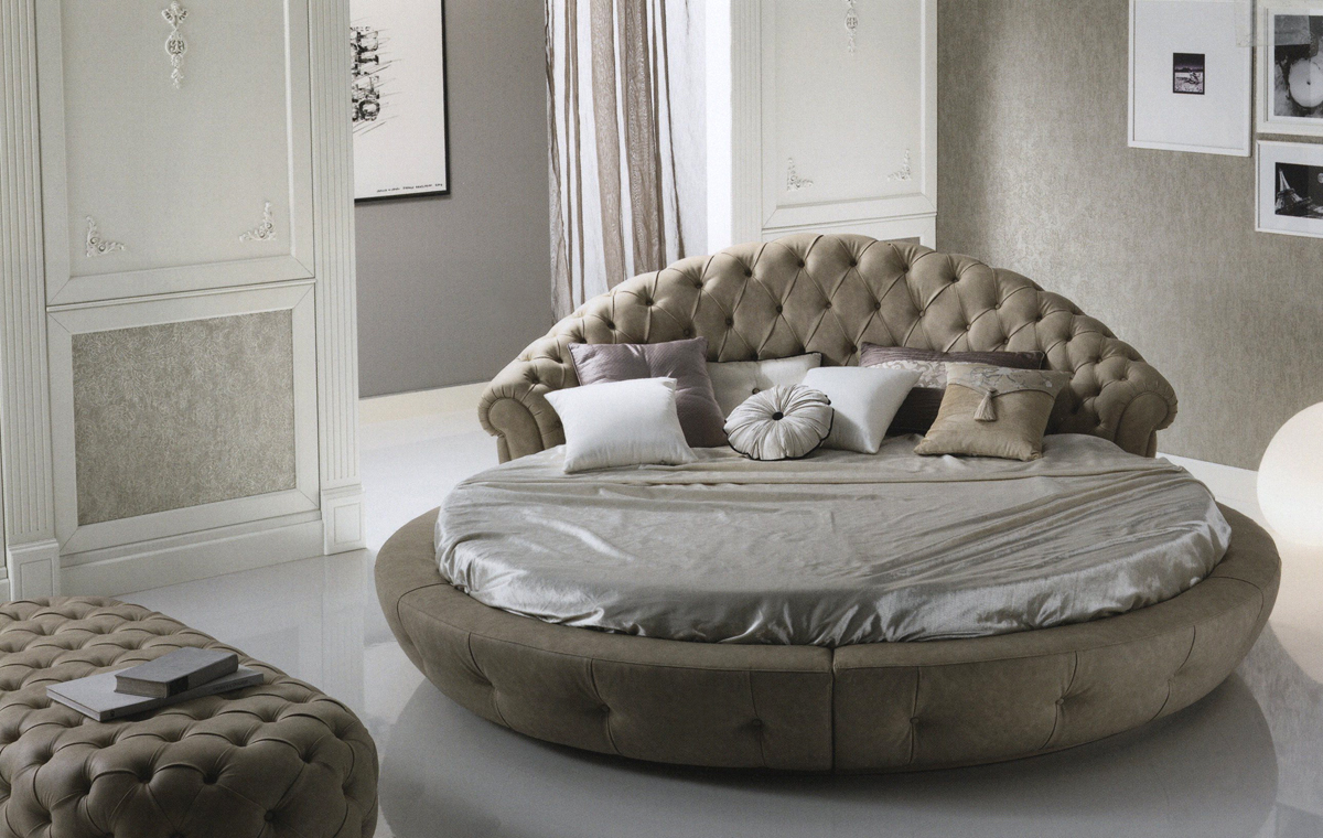 Las camas redondas y semicirculares se pueden instalar directamente en el suelo o en un podio especialmente diseñado para ellas.