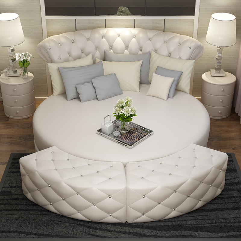 - También es una ventaja que las camas redondas tengan espacio de almacenamiento adicional. Como regla general, los modelos con un mecanismo de elevación pueden costar más que los modelos sin él, pero aún así, la opción con espacio de almacenamiento tiene mucha más demanda entre la mayoría de los compradores.