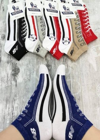 Algunas veces Los deportes son modelos con logotipos de marcas deportivas famosas., así como de materiales especiales, aunque no necesariamente se reducirán. Entonces, si está buscando un modelo hasta los tobillos, dígale al vendedor que quiere calcetines deportivos cortos. Además, los modelos deportivos incluyen modelos que ni siquiera cubren las elevaciones de los pies. Estos son unos calcetines muy cortos, en la pierna parecen gorros femeninos, pero están hechos de un material diferente. A menudo se les llama "seguidores masculinos". Se usa con zapatos cerrados en verano.