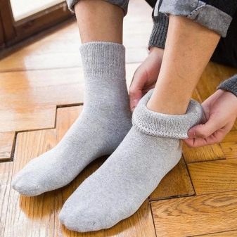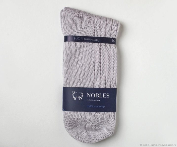 - Cachemira - material sólido, suave y flexible. Los calcetines de cachemira son significativamente más caros que los de algodón. El material proporciona a los pies el máximo confort y calidez.