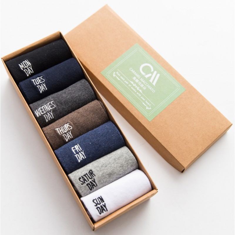 - Kits semanales ligeros o aislados Consta de 7 pares de calcetines para todos los días de la semana. Están hechos de algodón o lana natural con la adición de sintéticos (hilo acrílico).