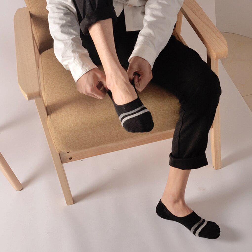 - Calcetines súper cortos. El producto no se ve fuera del zapato, da la impresión de un zapato descalzo. Se puede usar con cualquier calzado deportivo, mocasines, slip-ons, mocasines.
