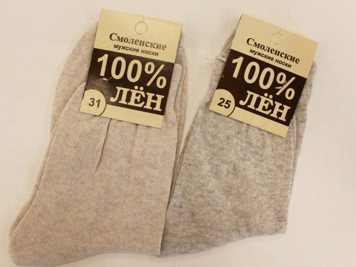 - Lino - material natural, higiénico, hipoalergénico. Los calcetines de lino absorben bien la humedad, proporcionan un buen intercambio de aire, no permiten que los pies suden y retienen bien el calor.