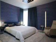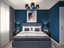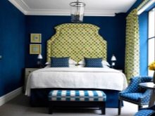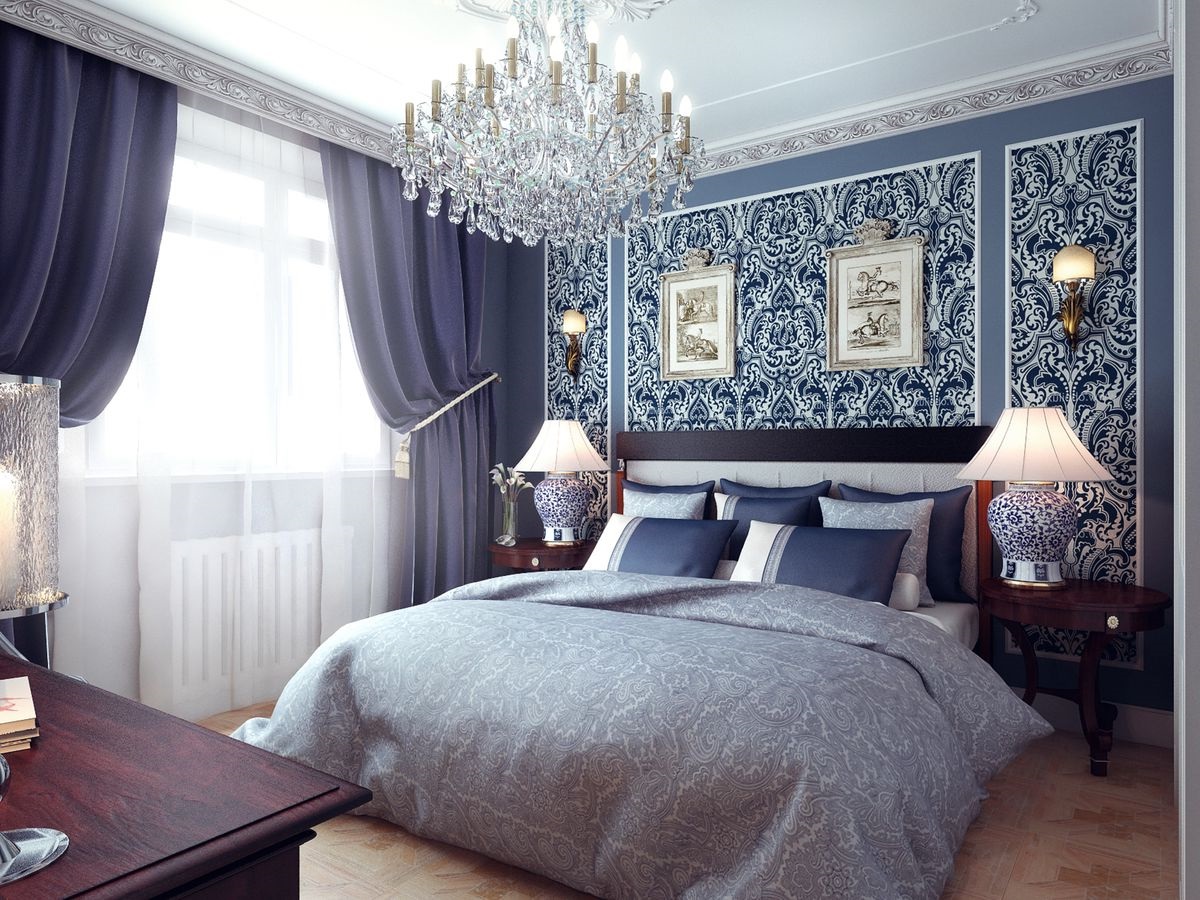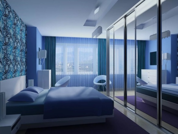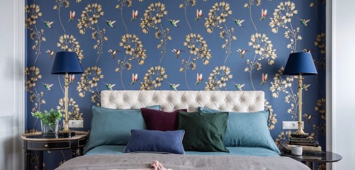 Los papeles pintados azules son adecuados para aquellos que quieren abstraerse de todos los asuntos vanos en el dormitorio, centrarse en la relajación o la lectura tranquila, escuchando música. El color también atraerá a aquellos que se consideran a sí mismos una persona conservadora que prefiere un curso pausado, la tradición y disfrutar de largas y tranquilas noches.