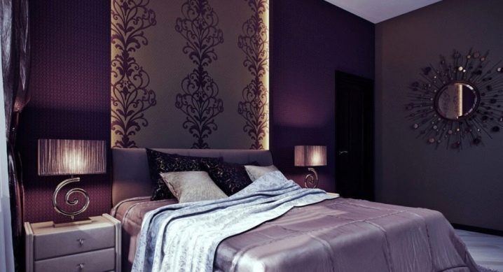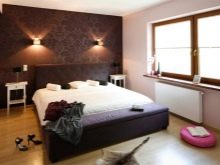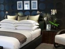 - Solo una pared se oscurece, pero es ella quien crea el ambiente. Noble, elegante, profundo y el diseñador se detuvo exactamente en el borde de la línea cuando el color y la textura más oscuros comenzarían a absorber otros objetos en el dormitorio.