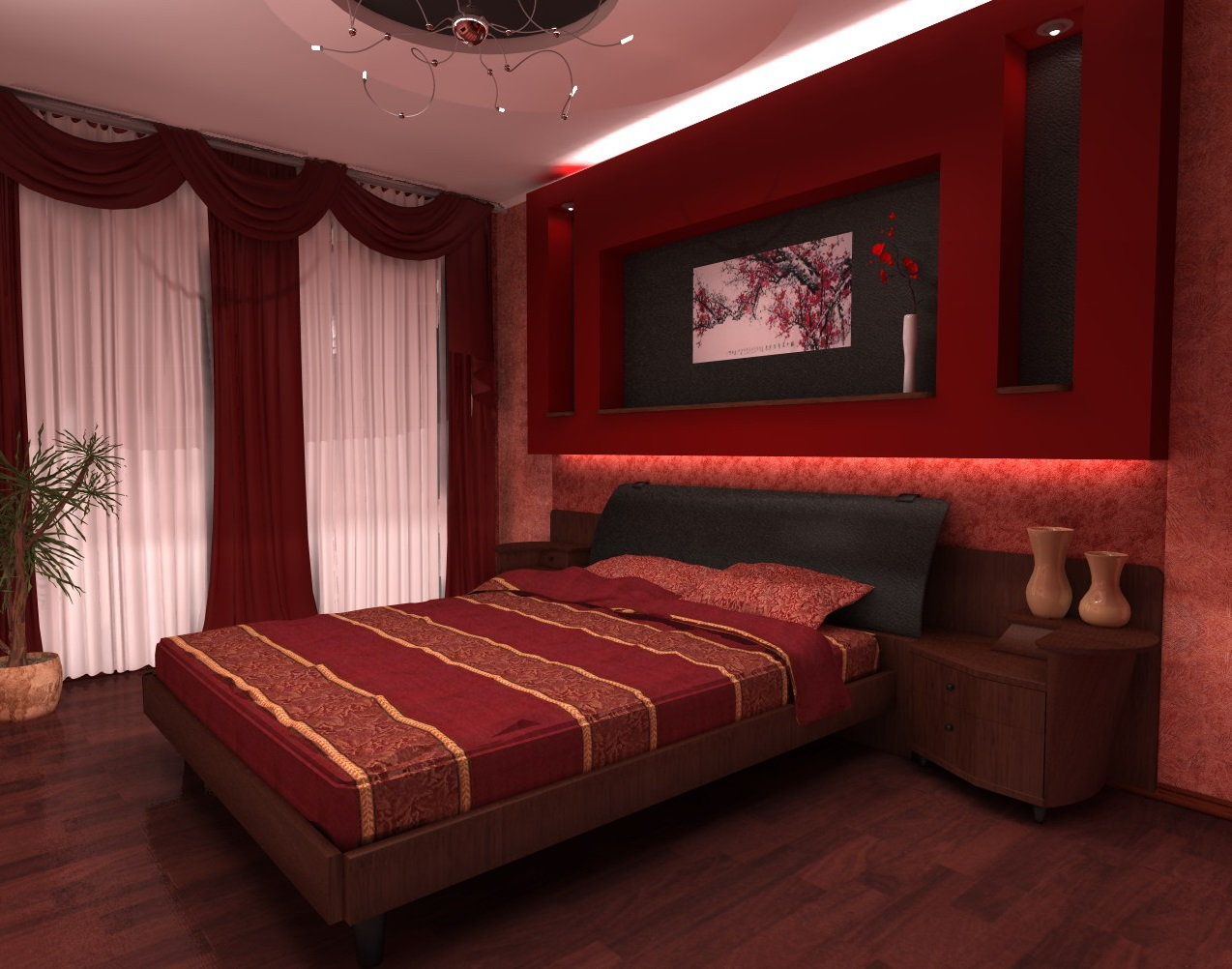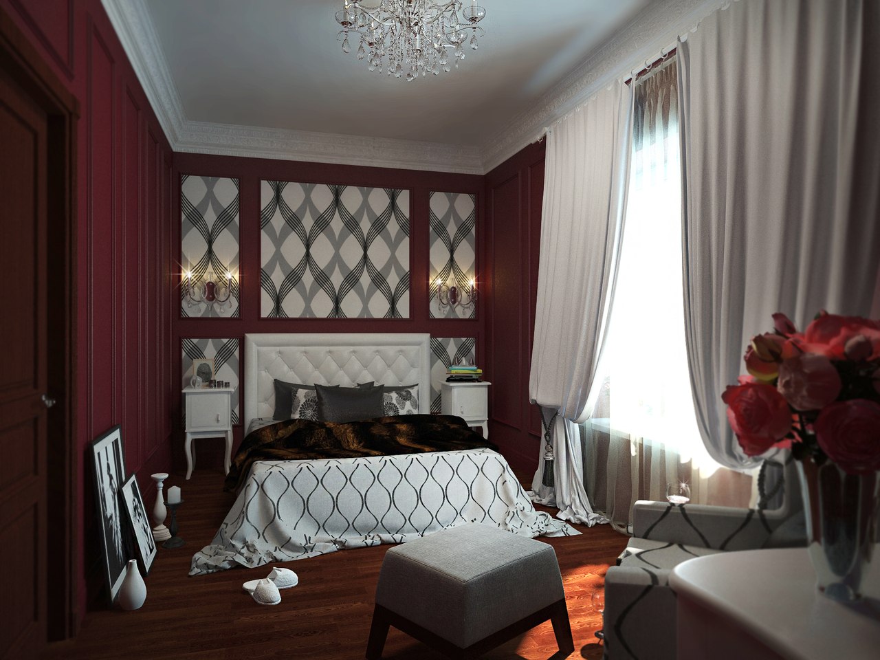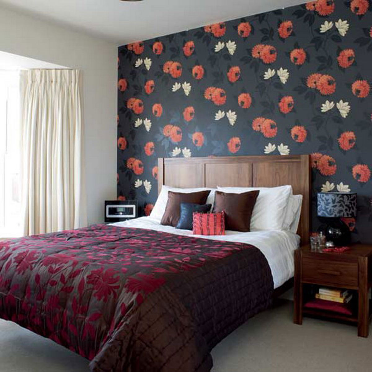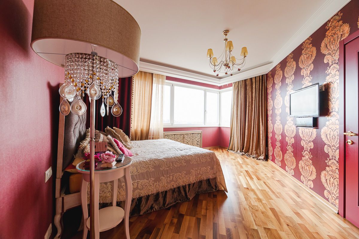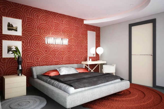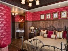Pero si la habitación es pequeña, estrecha, es más difícil ser apropiado para tonos rojo oscuro. Una habitación más espaciosa ofrece más opciones.