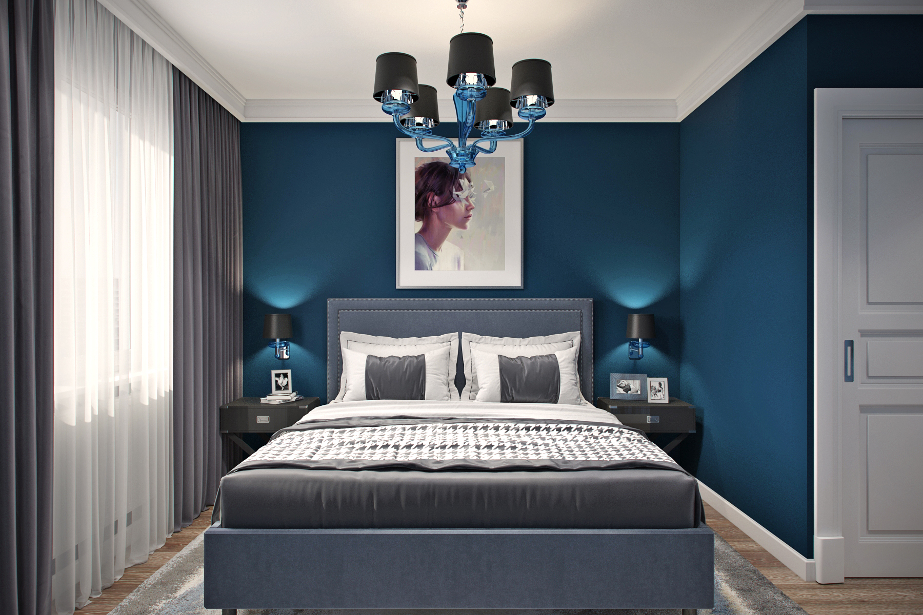 Es decir, el color no lo es todo. El mismo tono, por ejemplo azul-negro, da una imagen completamente diferente en un dormitorio pequeño y espacioso, en una habitación con diferentes geometrías, diferentes muebles, etc.