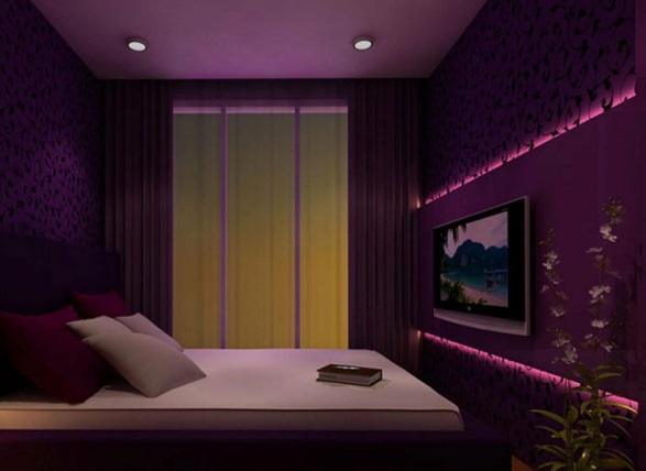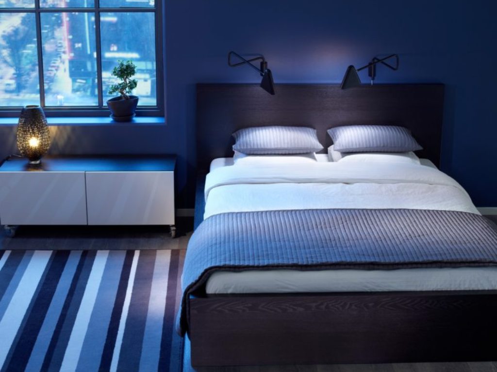 Y no fuerce el dormitorio con muebles voluminosos, cuelgue cortinas pesadas, porque agravarán la posición del color, será más opresivo.
