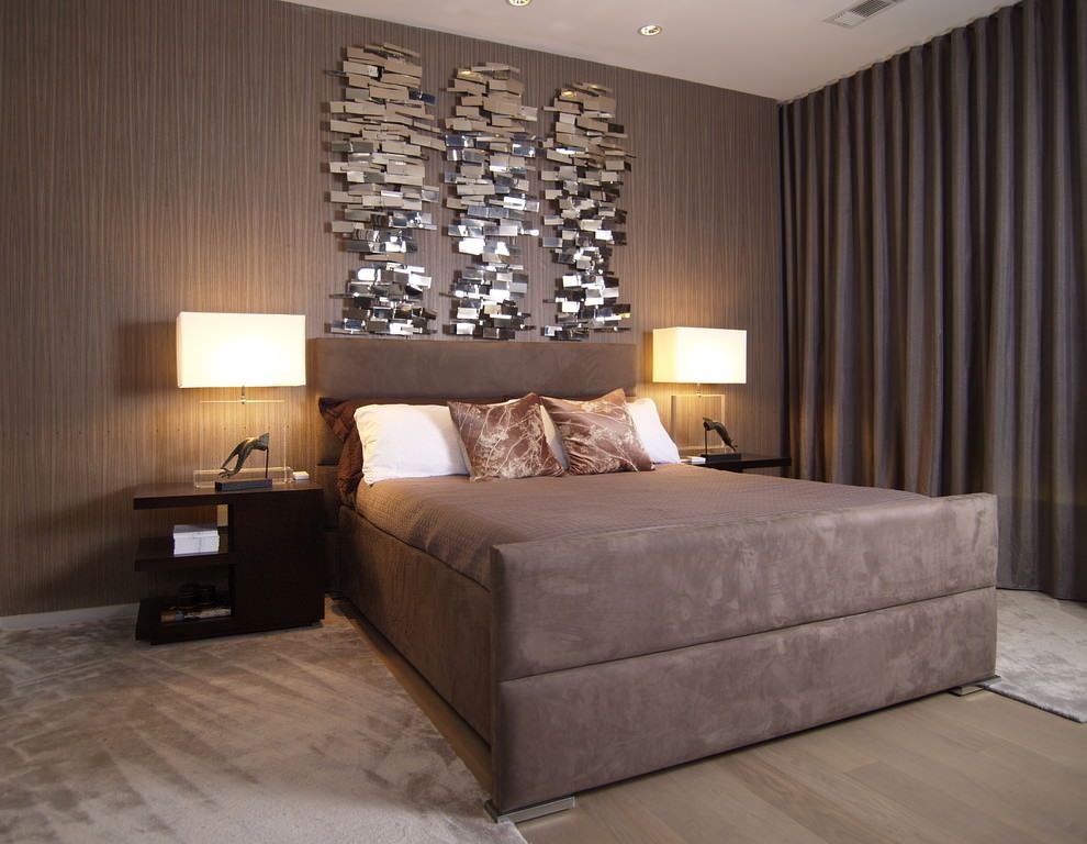 - El marrón y el gris se pueden combinar para crear tonos lujosos. En una habitación así, querrás dormir más tiempo.