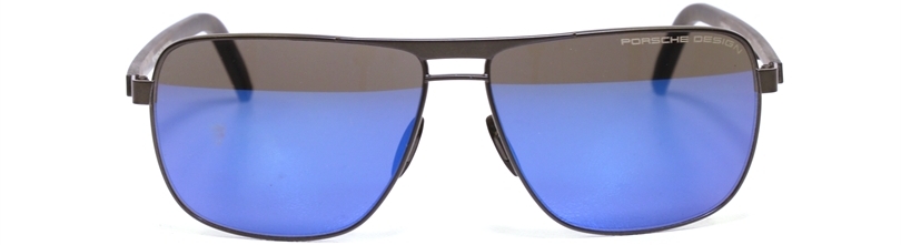 - Porsche Design Р8566. Gafas rectangulares con montura metálica en titanio, marrón, negro o gris. El tono de la lente puede ser azul grisáceo espejado, marrón, gris espejado y gris azulado. Como todas las gafas de sol de la marca, viene con un elegante estuche y un paño de limpieza.