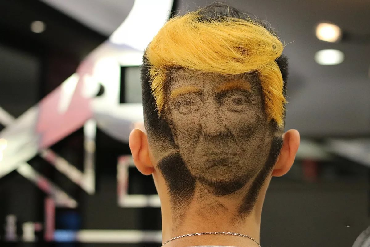 Se han inventado muchas soluciones estilísticas interesantes para hombres con cabello corto. Algunos de ellos no son solo cortes de pelo, sino verdaderas obras de arte. Un ejemplo de ello es un corte de pelo con un retrato afeitado en la parte posterior de la cabeza. Todo parece realmente original e inusual. La única lástima es que tan pronto como el cabello comience a crecer, toda esta belleza desaparecerá.