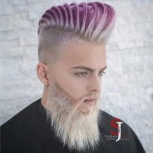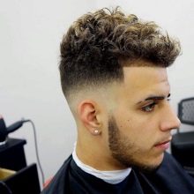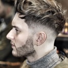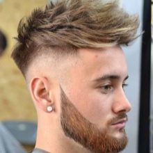 El corte de pelo superior del año pasado es un desvanecimiento bajo, con el inicio de la nueva temporada no ha perdido su relevancia. El sorprendente contraste de las sienes afeitadas y la nuca con un alargamiento de la coronilla a la frente se ve muy impresionante. En este caso, las hebras en el flequillo y la parte posterior de la cabeza se elevan verticalmente, se estructuran y enfatizan la expresividad de la forma del corte de pelo. Este peinado es adecuado para hombres con cara redonda o cuadrada, ayudará a equilibrar su forma y agregará unos centímetros de crecimiento.