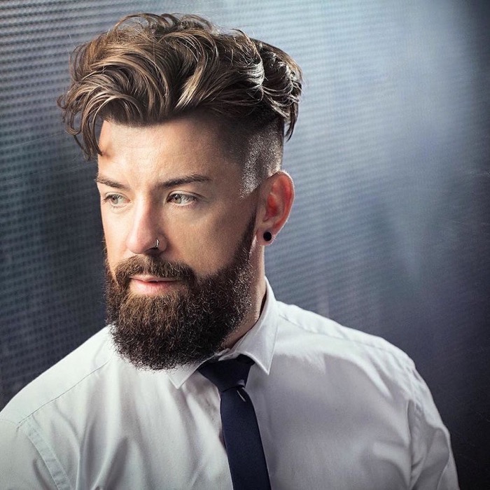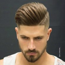 Esta opción de corte de cabello implica acortar el cabello en un solo lado de la cabeza. La sien y el costado pueden afeitarse por completo o simplemente recortarse debajo de una máquina de escribir de 0,5 a 0,7 cm, colocándose en un lado con flequillo asimétrico le permite corregir las características, para desviar la atención de una nariz demasiado grande. El corte de un solo lado es adecuado para hombres que no están preparados para cambios radicales.