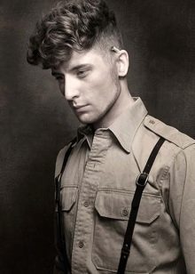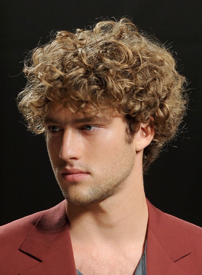 Entre las posibles opciones de peinado para el cabello rizado, puede notar la transferencia de flequillo largo hacia atrás o hacia un lado, enfatizando la estructura del rizo con crema. Los hombres pelirrojos optarán por racimos descuidados sin afeitarse las sienes, pegados en la coronilla o colas altas combinadas con barba y bigote.