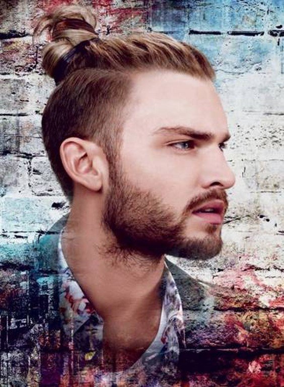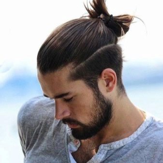 Se resalta el formato principal del moño: moño de hombre, en el que no es necesario acortar el cabello en los lados. En este caso, el cabello de longitud media debe llegar al menos hasta la barbilla. Las variedades de vigas, como los cortes de pelo de nudo superior, recuerdan más a un corte en términos de ejecución., pero le permite asegurar las hebras en la corona en una pequeña cola o nudo. Vale la pena prestar atención al hecho de que la longitud del cabello en la corona y la corona en este caso debe ser de aproximadamente 15 cm o corresponder a la palma del hombre.