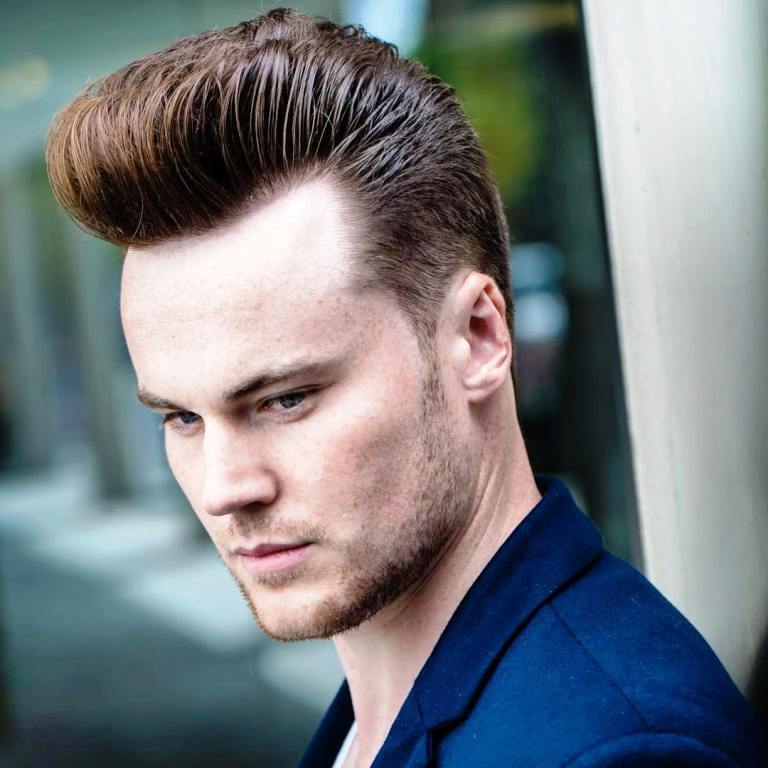 Se crea un peinado de copete debido a hebras de flequillo voluminoso ubicado en la parte frontal de la cabeza. El ancho se elige arbitrariamente: una ruleta estrecha se ve más moderna, una voluminosa le permitirá adquirir un aspecto desafiante de un dandi reconocido. Al comienzo del peinado, debe peinar el mechón seleccionado con un peine con dientes finos, moviéndolo hacia arriba y hacia abajo. El voluminoso rizo resultante se rocía con barniz y se coloca hacia la parte posterior de la cabeza.