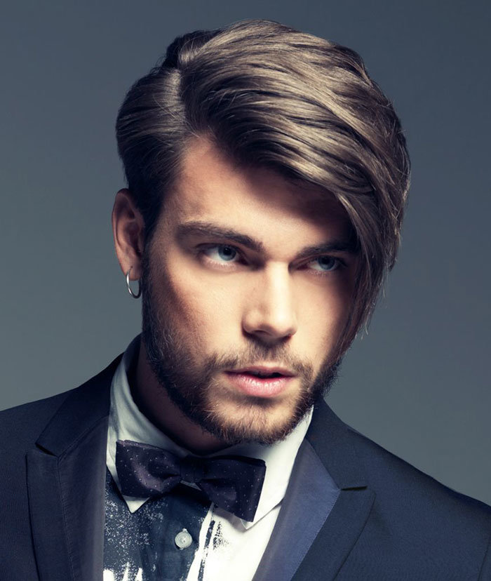 Al peinar hacia un lado, resulta ser un aspecto bastante conservador y al mismo tiempo moderno; es mejor combinarlo con el efecto del cabello mojado.
