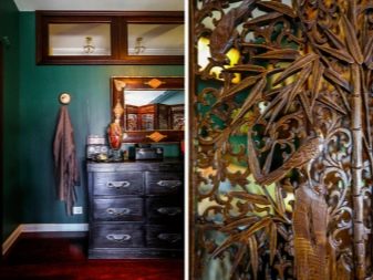 Los accesorios pueden ser muy diversos. El uso de estatuillas de varios tipos está justificado. Es bastante racional instalar sistemas de almacenamiento modulares. Una adición digna a la decoración también será: