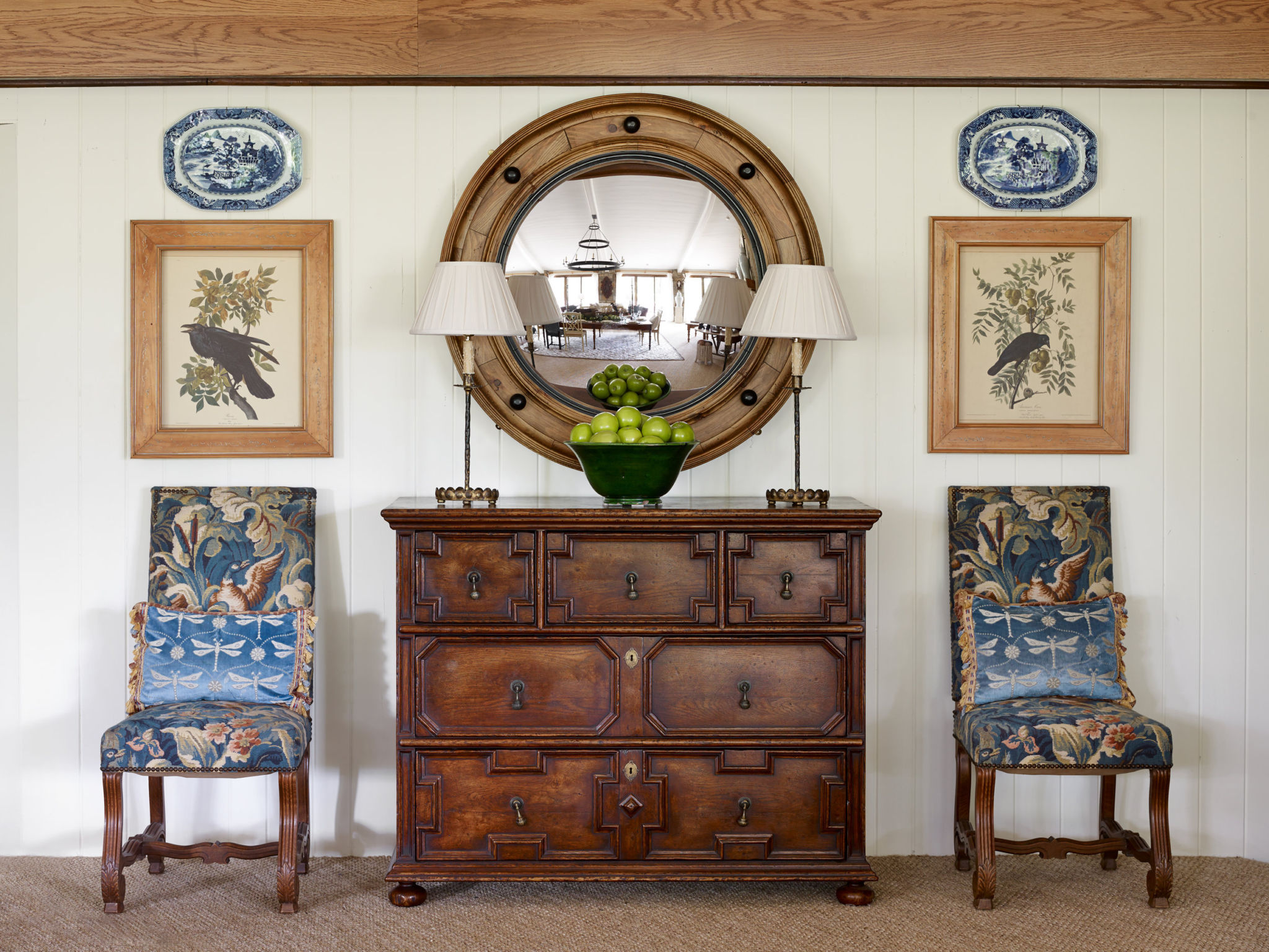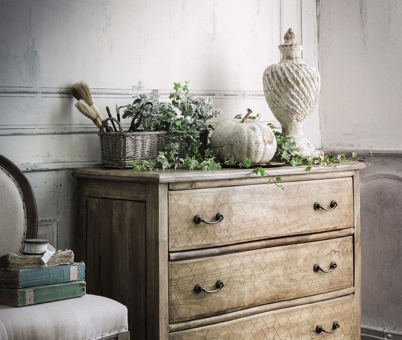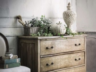 Los muebles hechos de roble o pino lacados serán un muy buen hallazgo. Los artículos antiguos también se integran armoniosamente en el entorno.