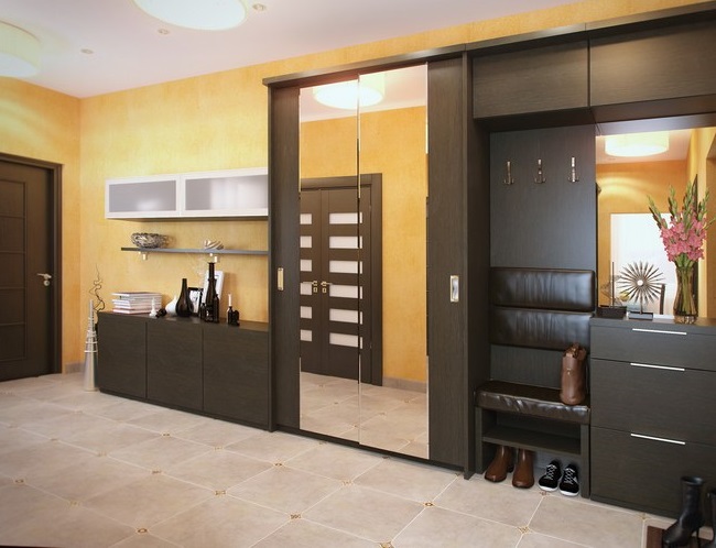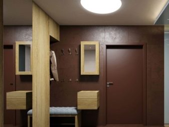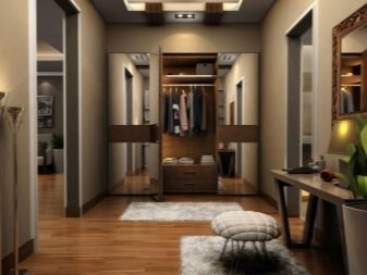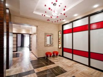 Por lo tanto, en un pasillo grande, es una solución bastante apropiada usar un gabinete grande que se coloca en toda la pared. La zonificación del espacio no debe realizarse en el exterior, sino en el interior; la mejor opción para hacer esto es utilizar cortinas o tabiques translúcidos de pequeño tamaño.