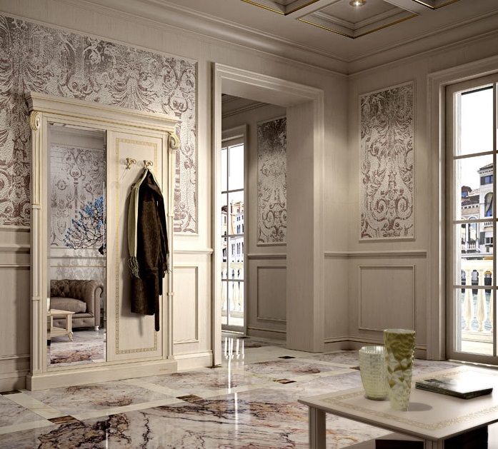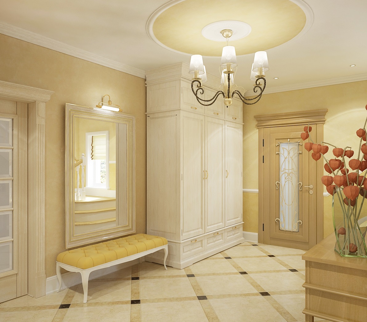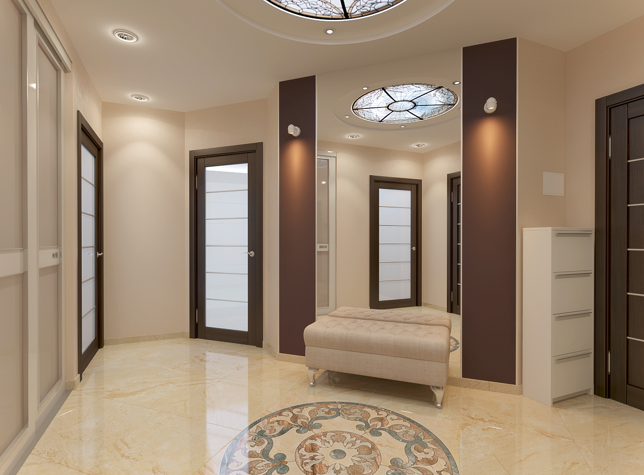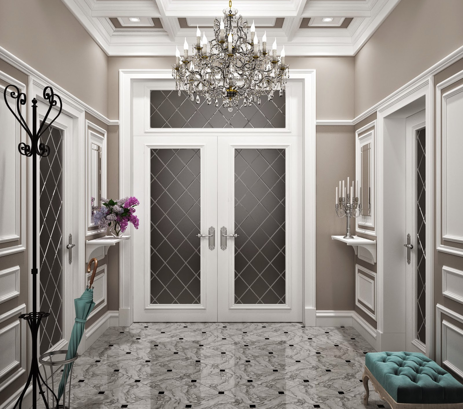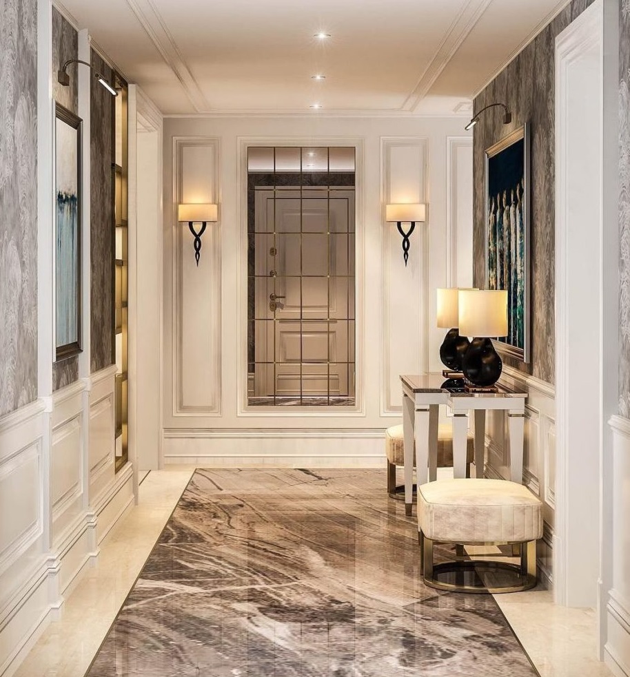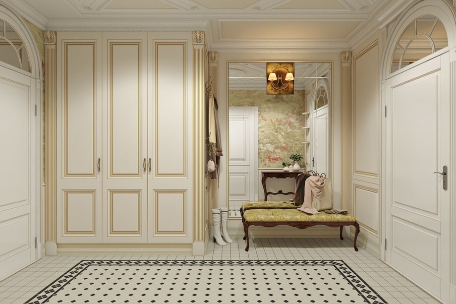 La gran dificultad en el diseño clásico del pasillo es que su apariencia debe ser consistente con la apariencia de otras habitaciones. La discrepancia entre los dos conduce a graves problemas estéticos.