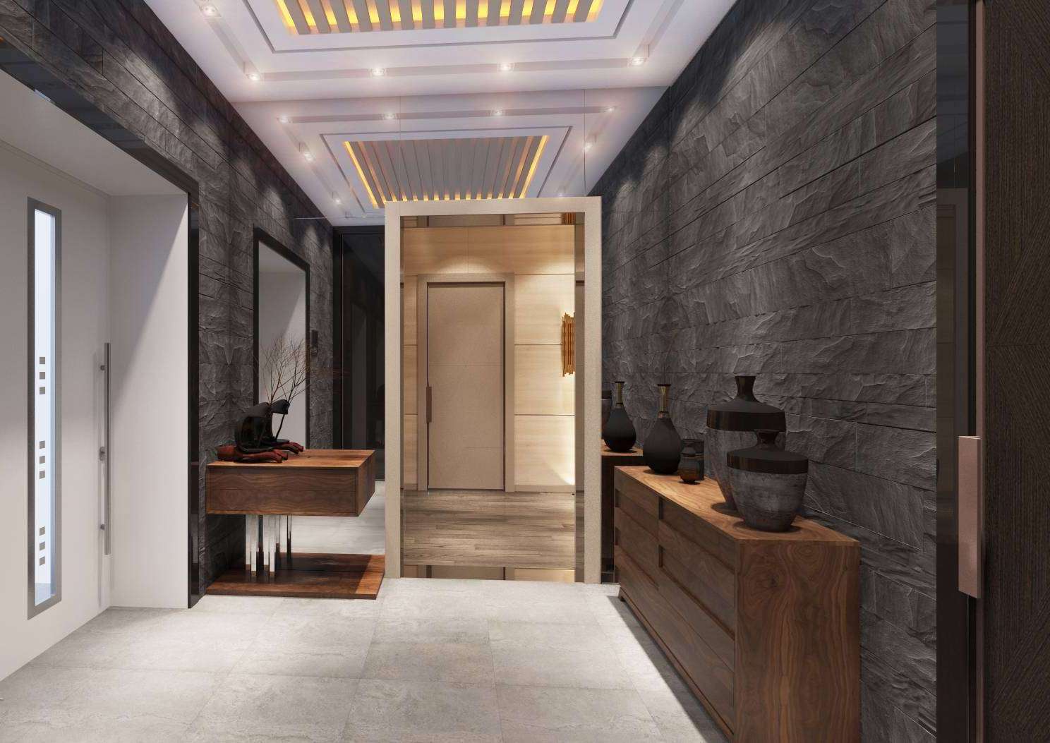 Un amplio hall de entrada se puede decorar completamente incluso en estilo colonial. Contiene notas de la vieja Europa y préstamos aislados del diseño tradicional de otras regiones del mundo.