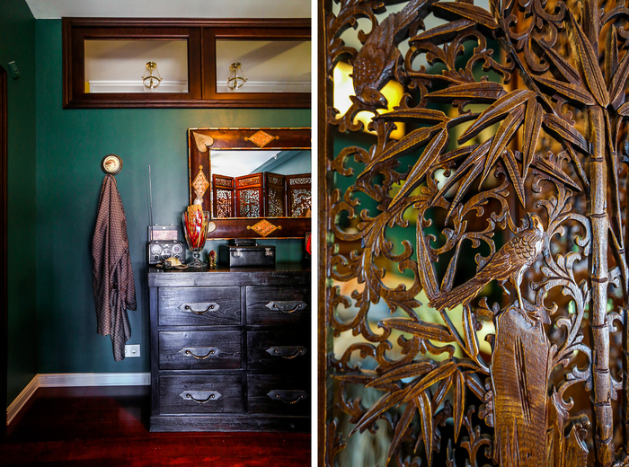 Todas las superficies suelen estar decoradas con colores coloridos. Se aceptan figuras de bronce, lámparas de pie de tela gruesa y pantallas de lámparas. Los paneles, tallados en madera oscura, también son bastante consistentes con los principios de la coloración colonial.