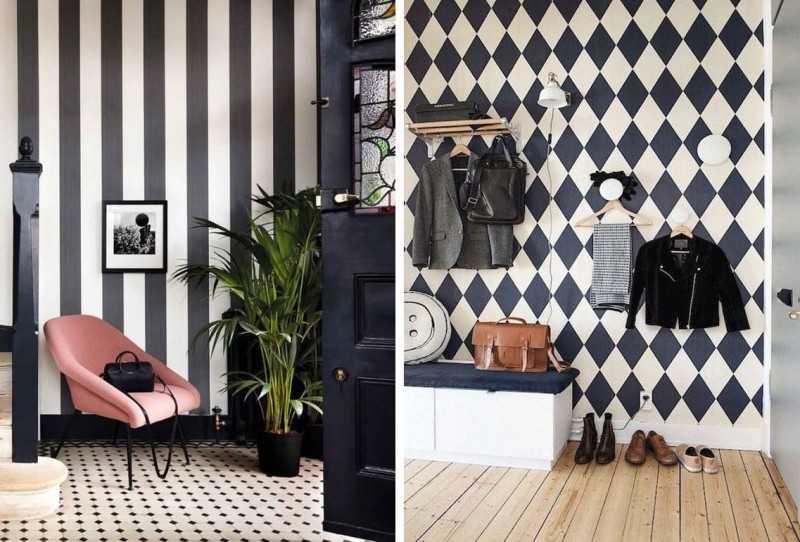 Si las paredes están cubiertas con papel tapiz, entonces no deben tener un adorno claro. Las flores grandes y las formas geométricas son una opción de diseño que está desactualizada durante décadas, lo cual es kitsch inequívoco.