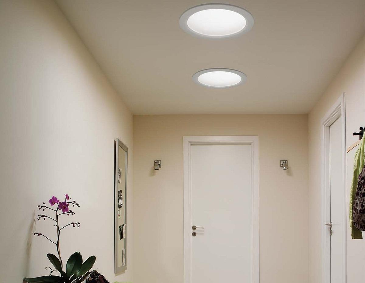 En los pasillos, las lámparas con luz blanca o amarilla son las más adecuadas. Las luminarias esmeriladas blancas con un diseño que ahorra energía son especialmente buenas.