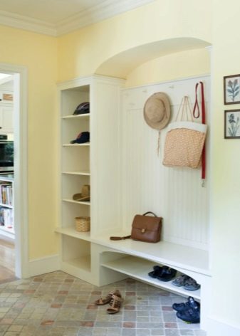 Los estantes empotrados no se compran en tiendas de muebles, se fabrican de forma independiente o por encargo. El valor de tales estructuras es que eligen el lugar más adecuado en un pasillo en particular y, al diseñar, tienen en cuenta cada centímetro de espacio libre.