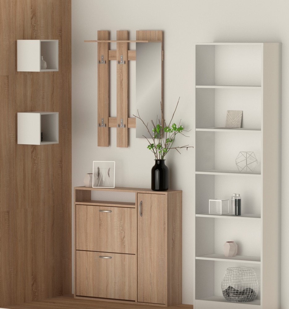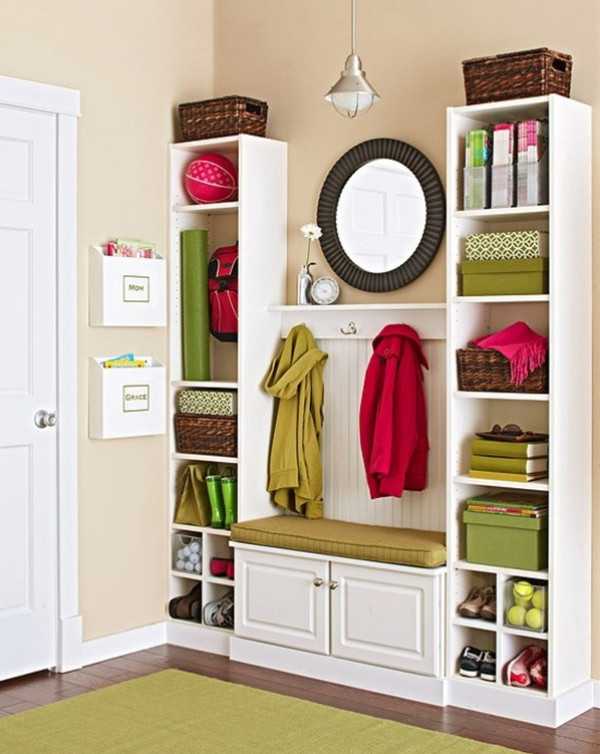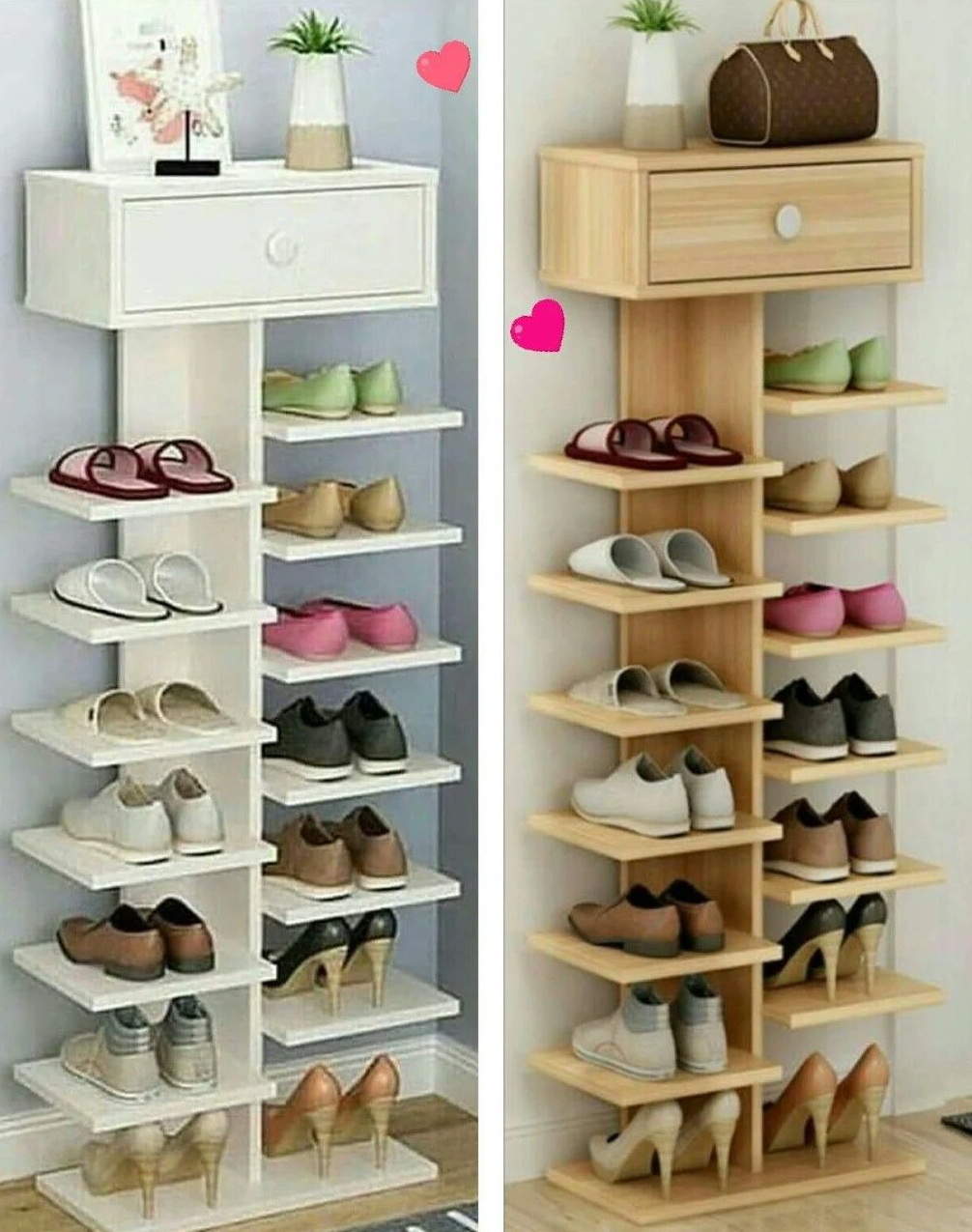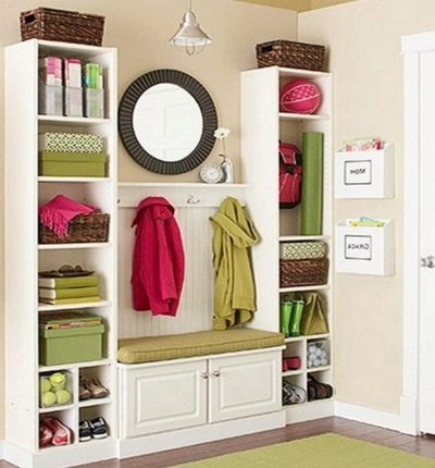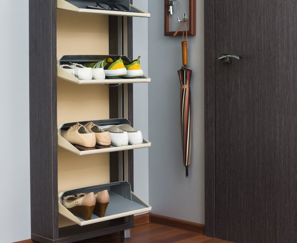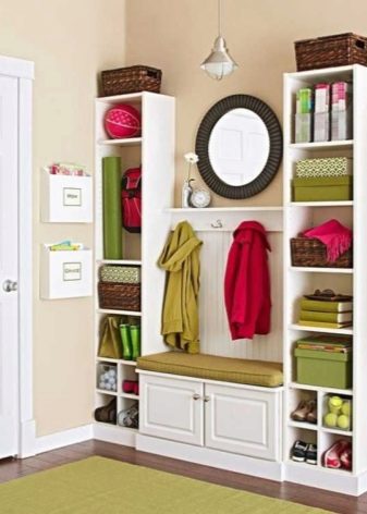 - Los racks pueden tener diferentes propósitos (para zapatos, accesorios, decoración), lo que le permite instalar varios modelos multiusos en un pasillo.