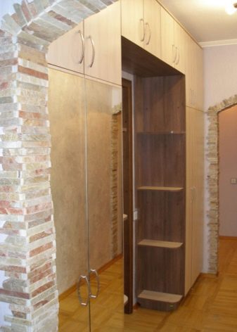 Los modelos anchos deben dejarse en pasillos espaciosos. Incluso si se colocan en un pasillo pequeño y ocupan toda la pared, la impresión de tal diseño será abrumadora, incluso los estantes abiertos no se salvarán.