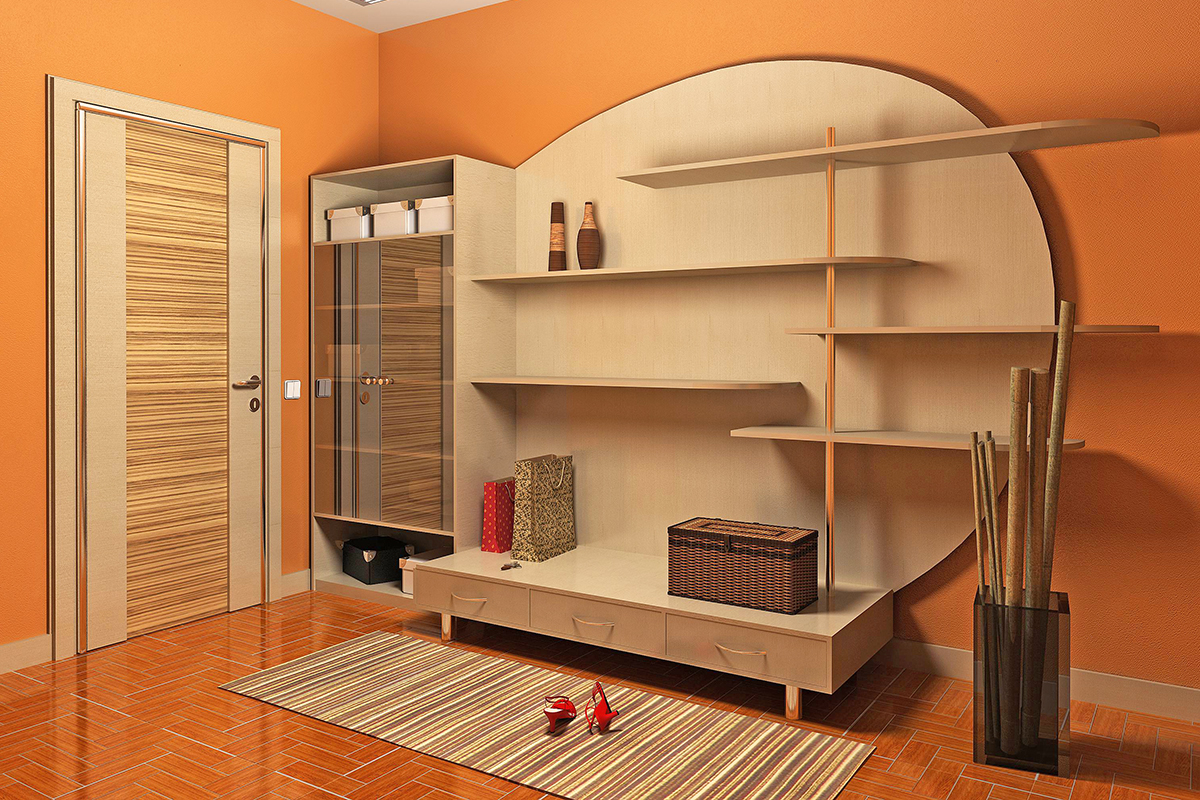 Los estantes con zapatos se colocan cerca de la entrada para no llevar suciedad al interior del pasillo. Los muebles de exposición para decoración se instalan más cerca de las puertas interiores.