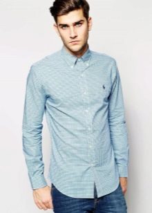 - Si quieres encontrar una camisa de jeans de calidad para todos los días, te recomendamos que eches un vistazo más de cerca a cuadros de algodón de manga larga... Una camisa a cuadros azul o gris claro no solo enfatizará el gran gusto de un hombre, sino que, además, será muy agradable para el cuerpo, porque está hecha de material transpirable. Un modelo interesante puede ser una camisa con cuello vuelto y un estampado en forma del logo de la marca. El precio es de unos 7 mil rublos.