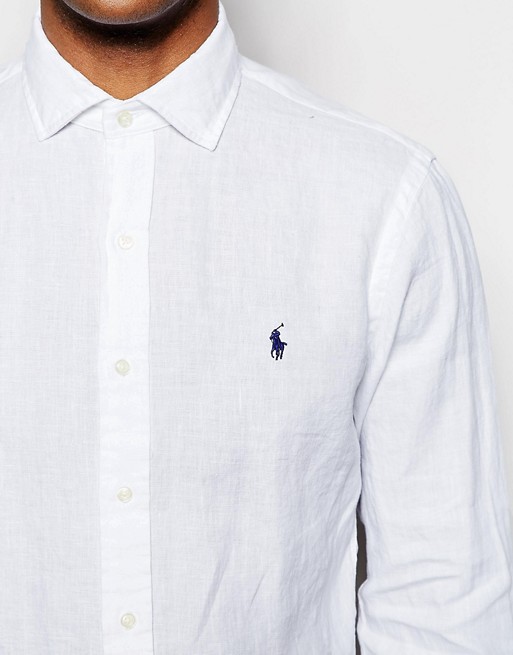 - Los amantes de los tejidos naturales también pueden prestar atención a Camisa de lino en un clásico tono blanco de la nueva colección de Ralph Lauren. Un modelo con un cuello menos estricto y una insignia distintivamente prominente puede complementar perfectamente cualquier look cotidiano de un hombre de negocios. El precio es de unos 9 mil rublos.