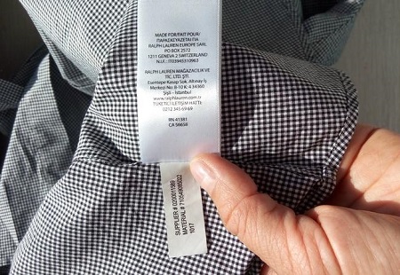 La mayoría de las veces, las camisas que se venden en boutiques nacionales se fabrican en Sri Lanka, pero se puede indicar otro país de origen. En los polos originales de la marca, la esquina de la correa de la camisa debe ir debajo del cuello. en las falsificaciones, en consecuencia, no pasa por debajo de ella.