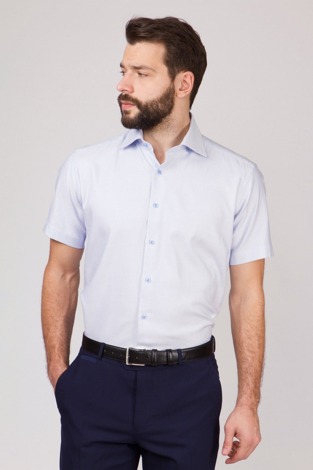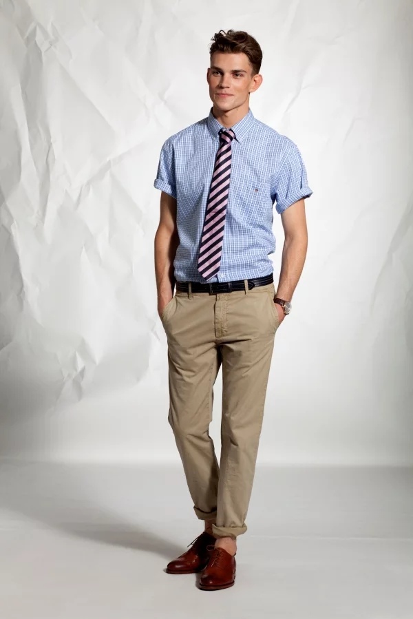 Camisas de manga corta utilizadas para trabajos de oficina, están fabricados con fibras naturales como el lino, el algodón o su mezcla, en un estilo empresarial se recomienda combinarlos con los siguientes elementos de vestuario: