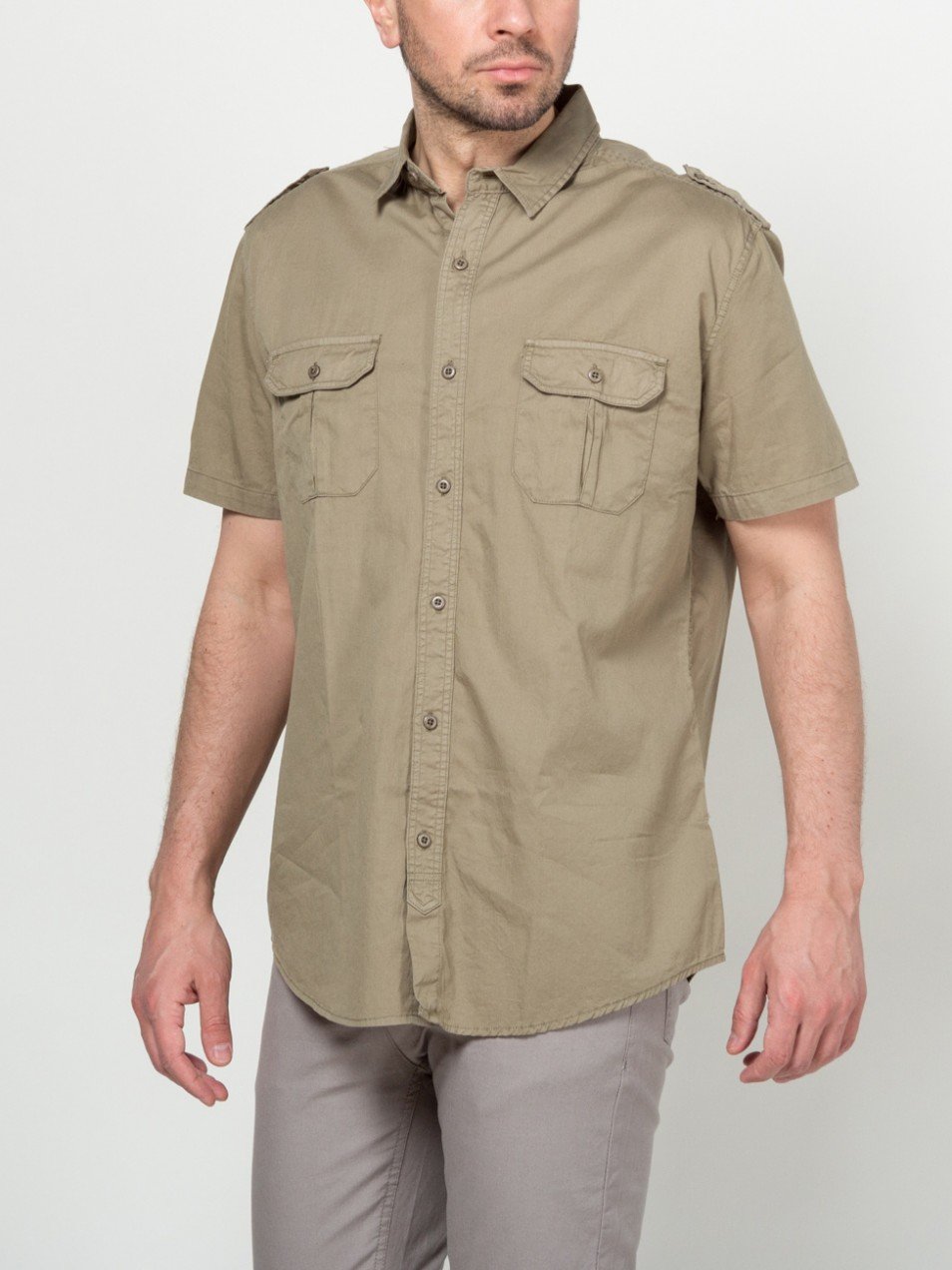 - camisa de corte clásico en estilo militar;