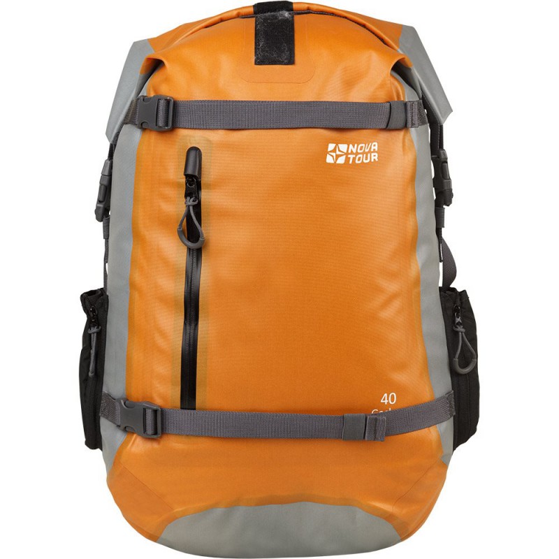 Nova Tour "Gecko 40" También es una excelente alternativa. Para la fabricación de una mochila de este tipo, se permite un poliéster fuerte, que retenga de manera confiable el viento y el agua. Incluso si se cae accidentalmente al agua, las cosas estarán protegidas de la humedad. Un volumen de 40 litros es suficiente para la mayoría de las personas. Incluso puede reducirlo aún más girando y asegurando un segmento separado con un broche.